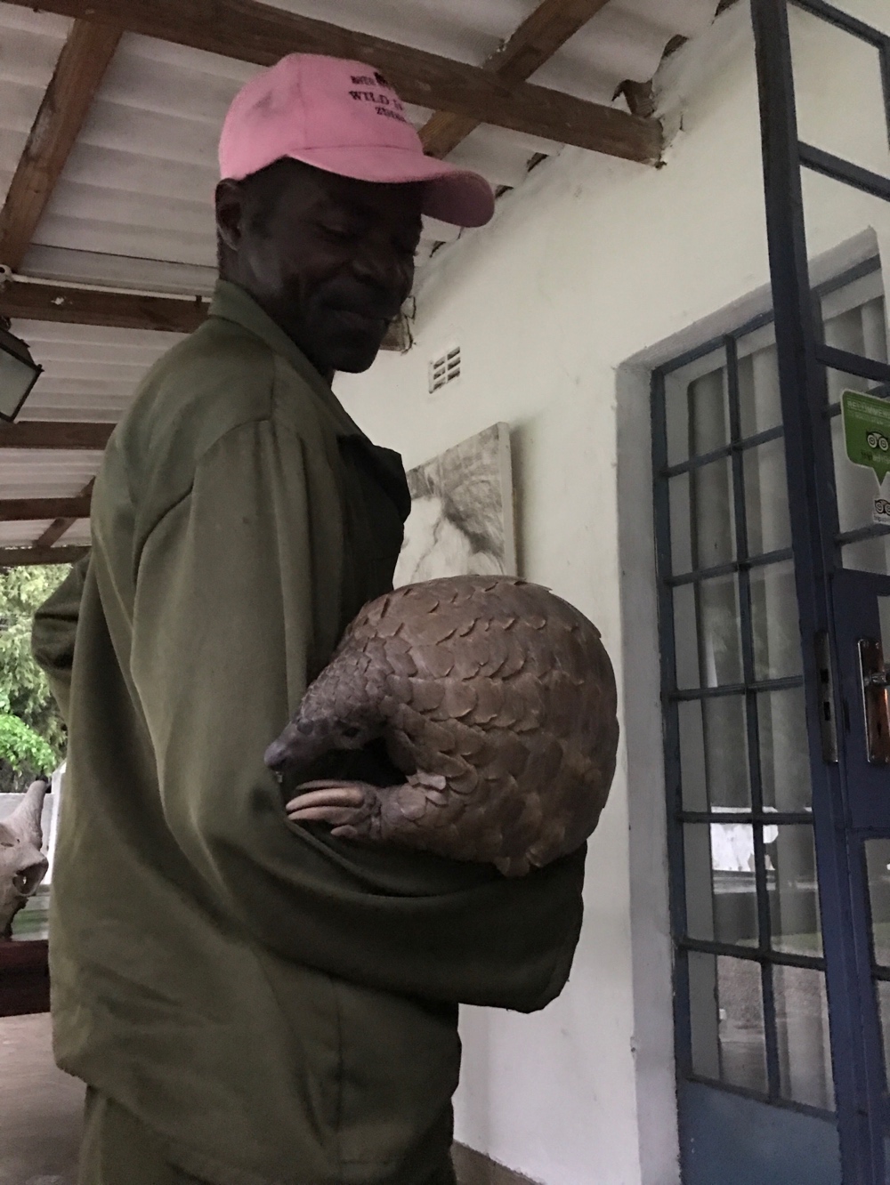 I didn't even know what a pangolin was until meeting Marimba, a 10 year old Cape Pangolin which is the oldest living pangolin in captivity in Zimbabwe. Her handler Mateo adores her...and I mean, ADORES her and she him. I loved watching the two of them together. Mateo has been caring for Marimba for 9 years. Each day, he carries her in his backpack through the bush to find anthills so that she can eat her required 300 grams (~10.5 ounces) of ants each day. Pangolin are nocturnal and very little is known about the species - no one is even sure of a life expectancy. They range in size of 12 to 39 inches long, and their tongues are as long as their bodies and tails combined. It actually retracts into a small pouch next to their abdomen.