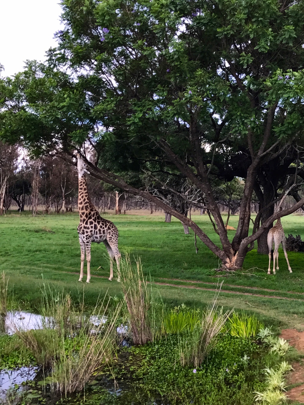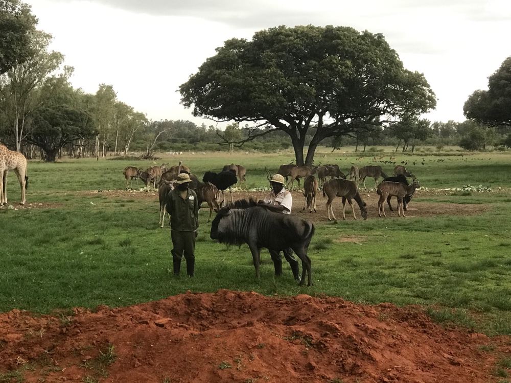 What a spectacular experience! I would absolutely live there if allowed. We got to see cheetahs, lions, elephants, giraffes, a warthog, goats, wildebeest, kudu, sable, peacocks, ostriches, monkeys, and a pangolin. These animals are so well-loved by the incredible staff, and it was truly a beautiful thing to watch the relationships between humans and animals. A couple ornery elephants kept us laughing, the high-maintenance giraffes insisted on trying to stay dry from the rain, the lions put on a lazy showing of eating their dinner...but my favorite part was the pangolin.