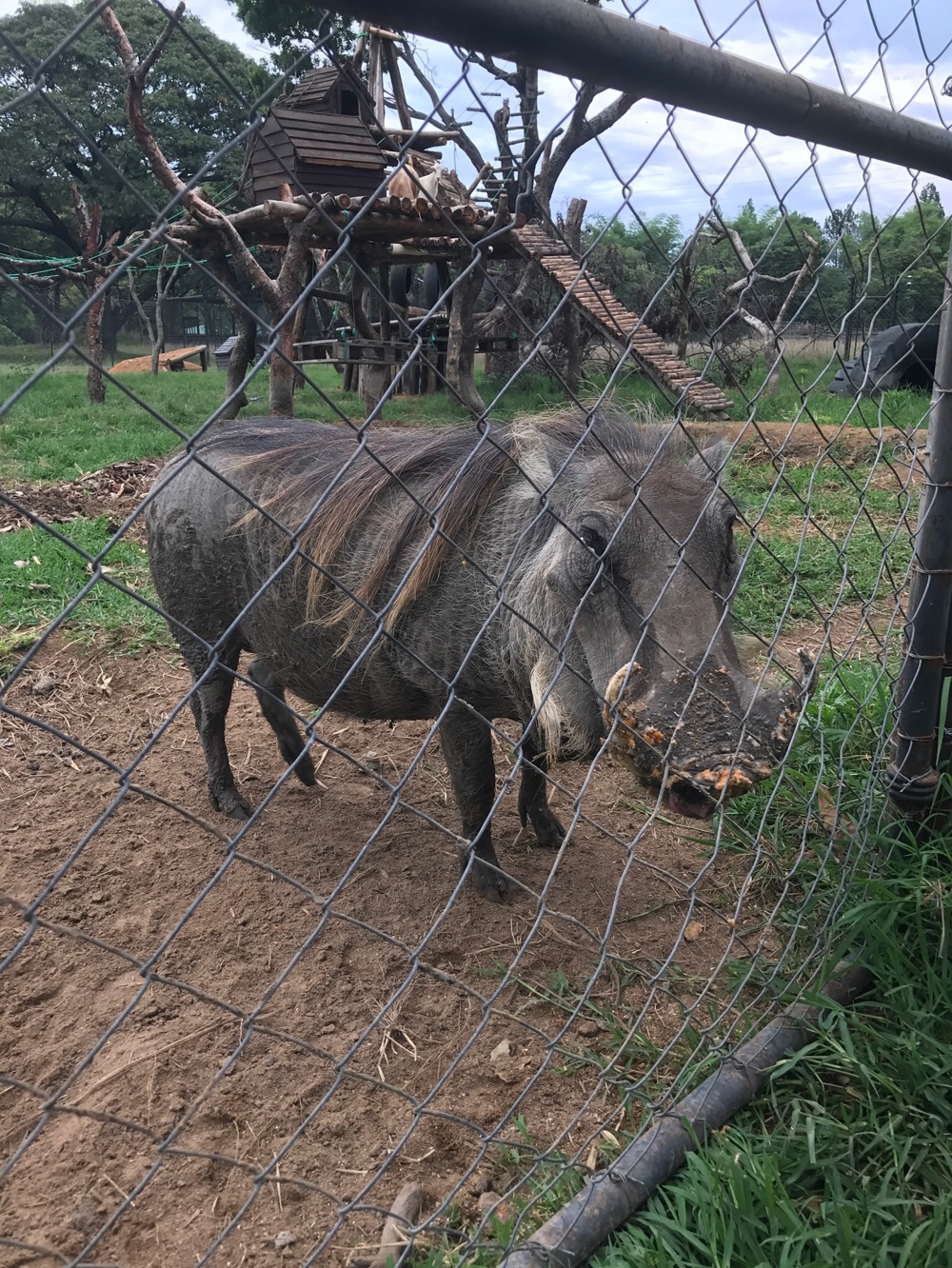 Other personalities at the sanctuary include Moyo the 2 1/2 year old elephant that likes to chase Noodles the wildebeest; Pickles the warthog that lives with goats and loves to sleep on the couch; Annabelle the giraffe that hates rain so much that she tries to take cover under a tent which is far too short for her height; and the two dogs Sophie (8 year old terrier) and Badger (5 month old pit bull) - Sophie is a great tour guide, and Badger loves to torture the monkeys.