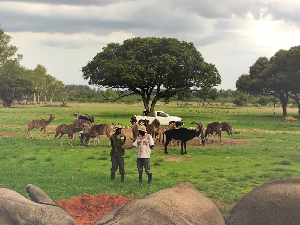 Our second day in Harare, we took a taxi out to Wild Is Life Trust and ZEN (Zimbabwe Elephant Nursery) which is about 5 minutes away from the airport. The cost to get in seemed a little high at a suggested donation of $95 per person, but the five star reviews all said that it is more than worth the cost for the amazing work these people are doing at this animal sanctuary. Plus they serve afternoon tea with scones and cakes halfway through and then later serve champagne and canapés (hors d'oeuvres) at the end.